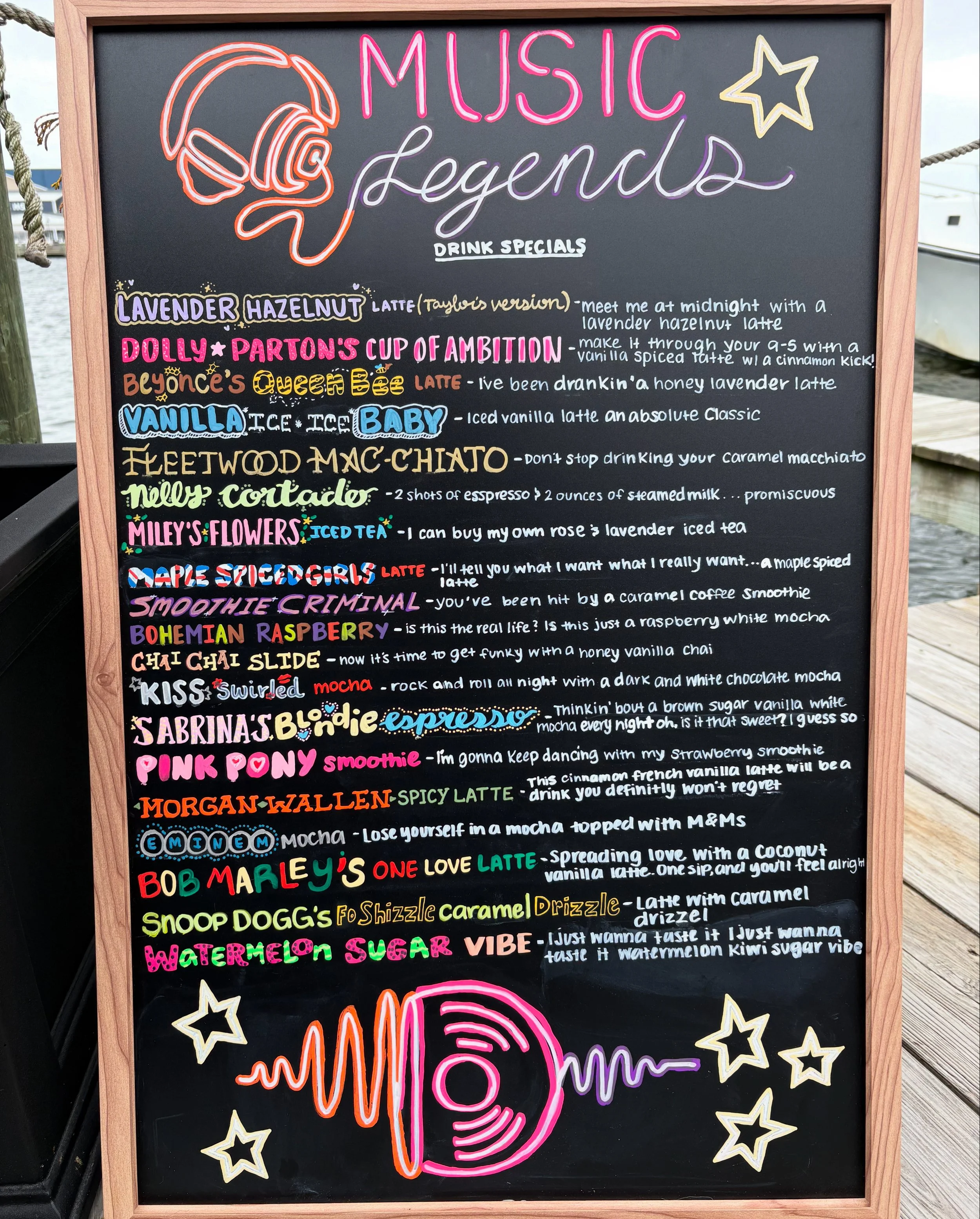Thank you for carrying soy milk, vanilla, it made me happy after a long drive. They have a beautiful dock on the water with rocking chairs, the perfect spot to sip your coffee.” —Jay