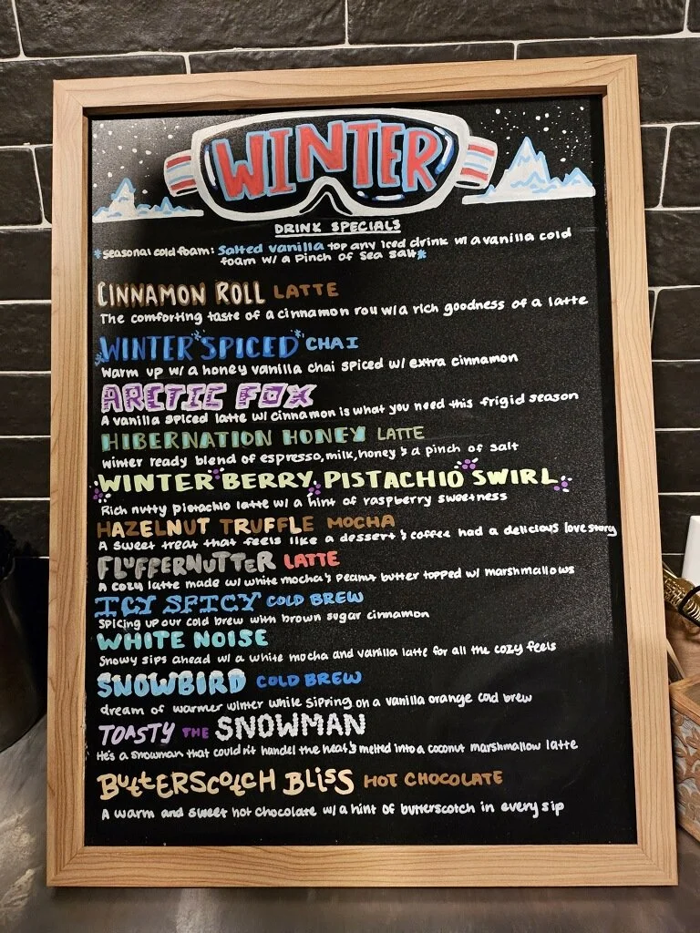 Local legends Rise Up Coffee roasters are known for their smooth brews and decadent delights. We’ve teamed up with Maryland’s top coffee roasters to bring you the freshest, most flavorful beans around. Then our talented baristas work their magic—putting our own twist on classic recipes to craft one-of-a-kind drinks you won’t find anywhere else. Ready for something new? Explore our seasonal menu for playful, staff-created sips that change with the seasons and keep every visit exciting. Come taste the difference!